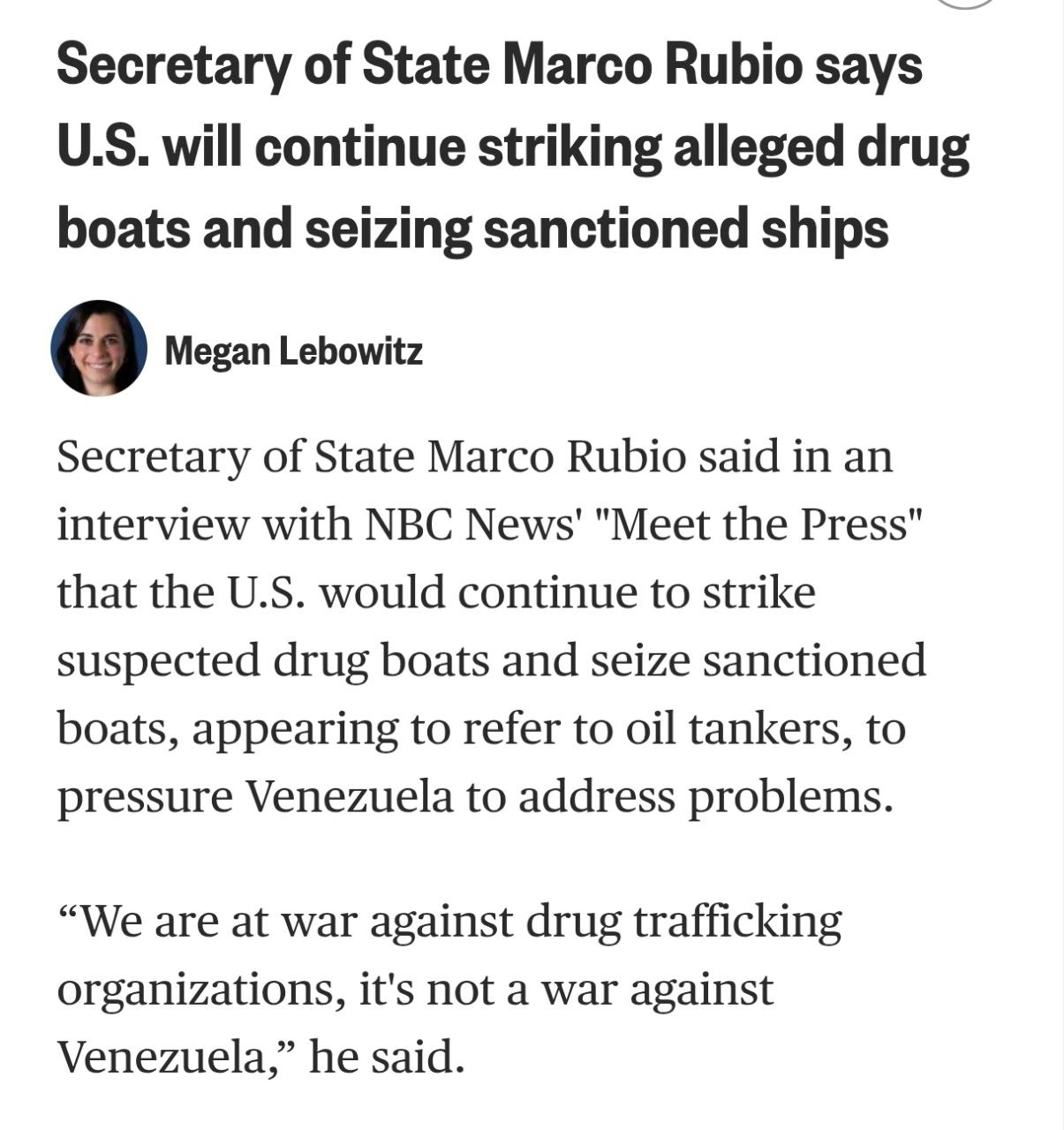 Удары по судам. Рубио дал понять, что США продолжат давление на Венесуэлу