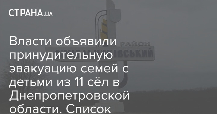 Власти объявили принудительную эвакуацию семей с детьми из 11 сёл в Днепропетровской области. Список