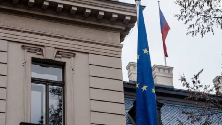 Перед зданием правительства Чехии убрали с флагштока украинский флаг, заменив его флагом Евросоюза.