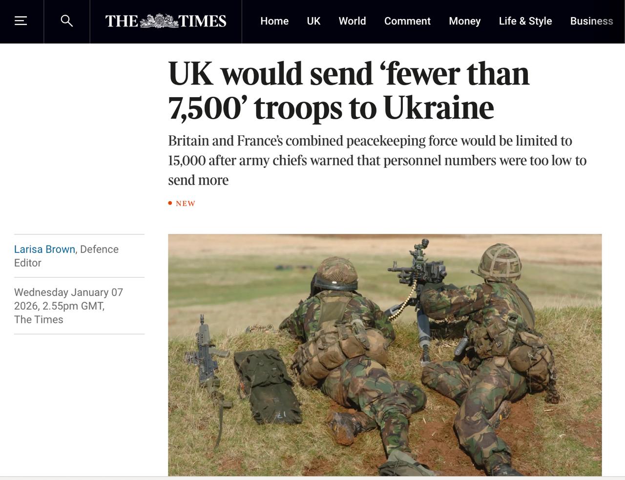 По их данным, первоначально британское военное руководство предлагало направить 10 тысяч военнослужащих в рамках более широкой "коалиции решительных" численностью 64 тысяч человек, но Минобороны сочло это нецелесообразным, учитывая нынешнюю численность британской армии.