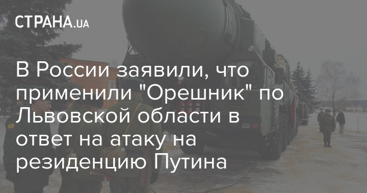 В России заявили, что применили "Орешник" по Львовской области в ответ на атаку на резиденцию Путина
