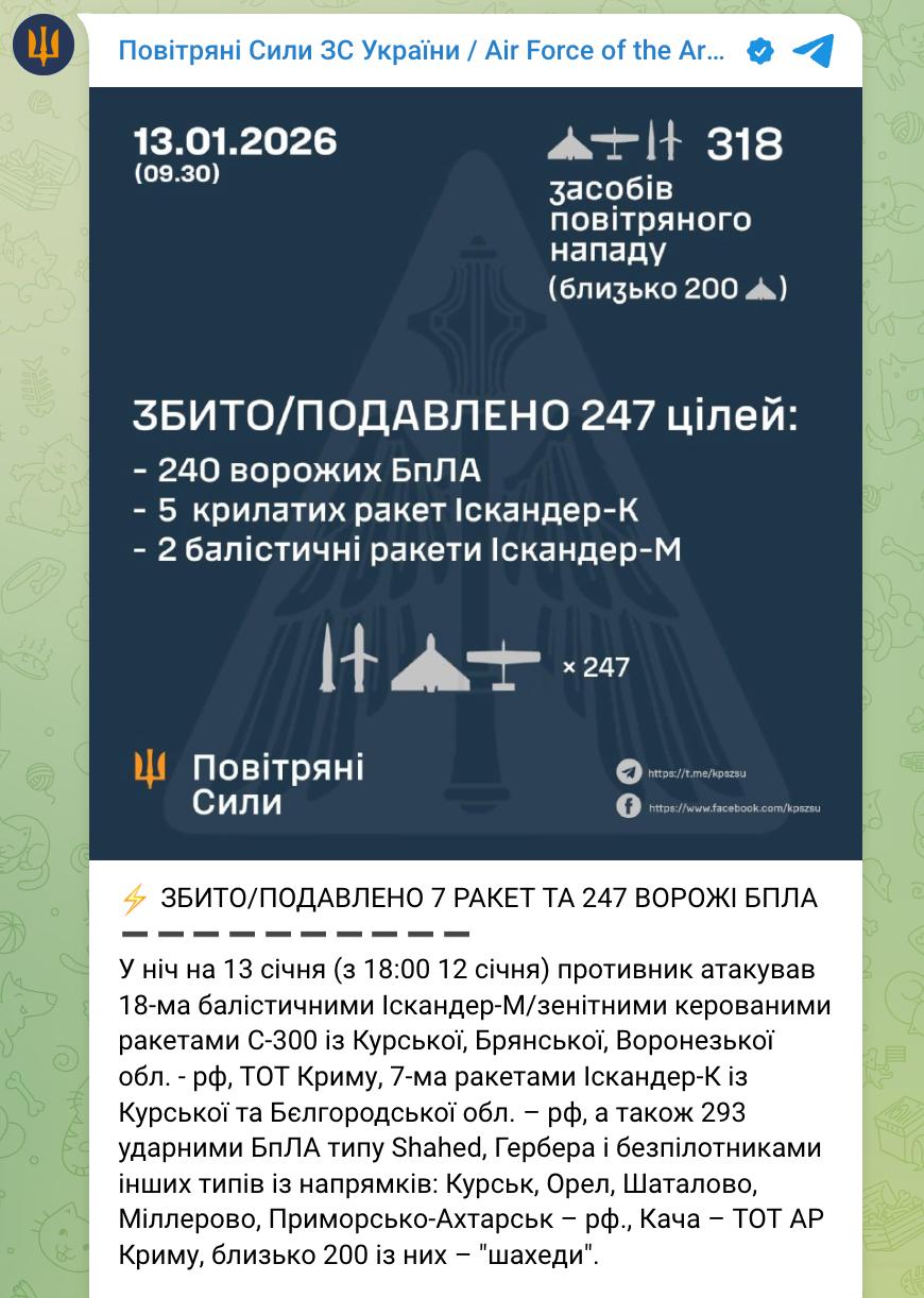 Во вторник, 13 января, в Украине идет 1420-й день войны с Россией. После ночных ударов по объектам энергетики почти весь Киев остался без света.