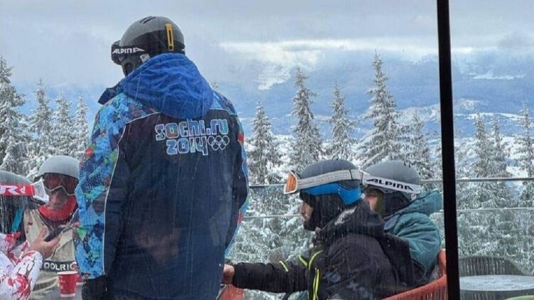 На горнолыжном курорте в Буковеле Ивано-Франковской области отдыхающие сняли мужчину, одетого в куртку с логотипом Зимней олимпиады 12-летней давности и надписью "Сочи-2014".