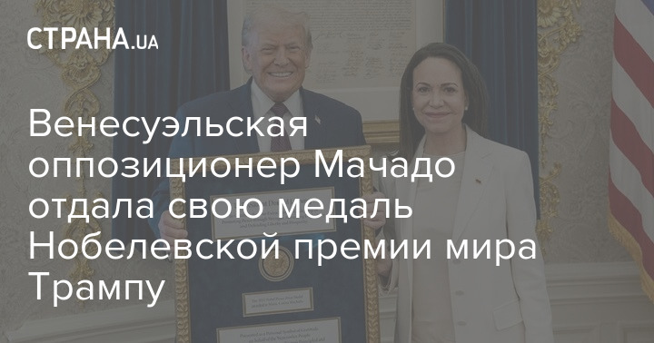 Венесуэльская лидер оппозиции Мария Корина Мачадо сообщила, что на встрече в Белом доме отдала свою медаль Нобелевской премии мира президенту США Дональду Трампу.