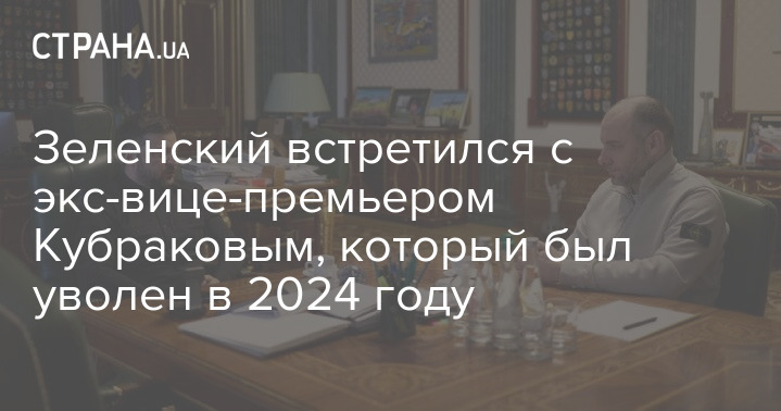Президент Украины Владимир Зеленский встретился с бывшим вице-премьер-министром Александром Кубраковым, который был уволен по инициативе Банковой в 2024 году.
