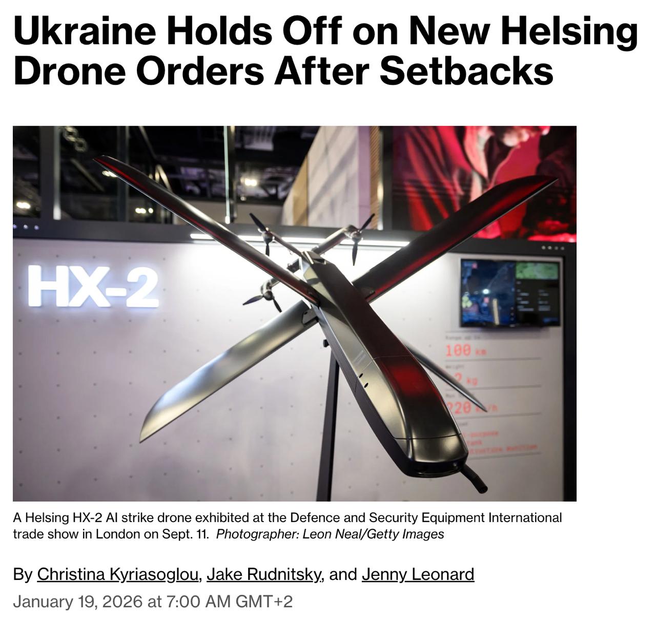 Украина временно остановила действие контракта на поставку дополнительных ударных беспилотников, который был заключен с немецкой компанией Helsing. Причиной стали неудачные испытания БпЛА в боевых условиях на украинской территории.