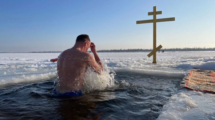 Украинцы массово отмечают Крещение по старому стилю и окунаются в проруби несмотря на мороз