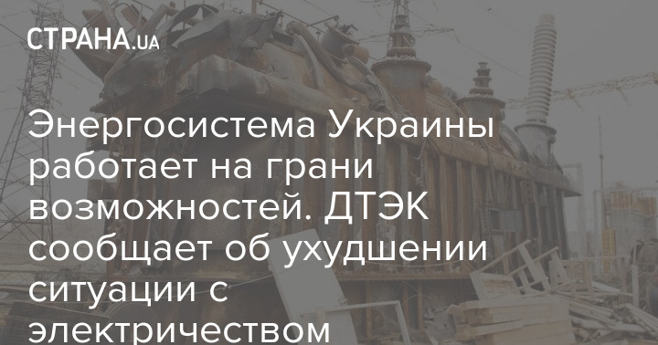 Энергосистема Украины работает на грани возможностей. ДТЭК сообщает об ухудшении ситуации с электричеством