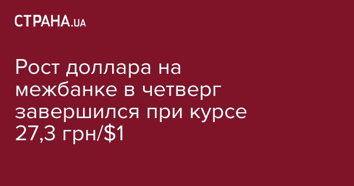 Рост доллара на межбанке в четверг завершился при курсе 27,3 грн/$1