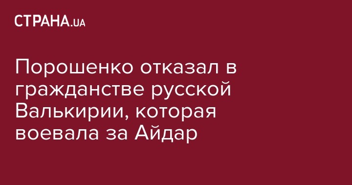 Президент Петр Порошенко отказал в предоставлении украинского гражданства 21-летней россиянке Юлии Толопе, которая воюет на Донбассе в составе "Айдара" под позывным "Валькирия". Об этом она сама сообщила в Facebook.