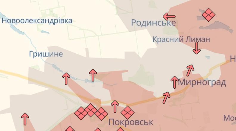 Армия РФ продвинулась в Покровске, сообщает Deep State. Также россияне накапливают пехоту в северной части Покровска и пытаются зайти в Гришино, пишет паблик.