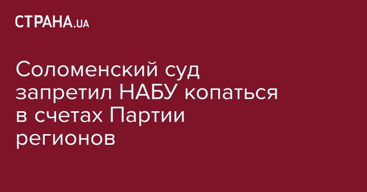 Соломенский райсуд Киева отказал НАБУ в удовлетворении ходатайства о предоставлении доступа к счетам избирательного фонда Партии регионов в ПУМБ, которые по мнению детективов НАБУ были связаны с "черной кассой" Партии регионов. Об этом сообщается в постановлении суда, обнародованном в Едином реестре судебных решений.
