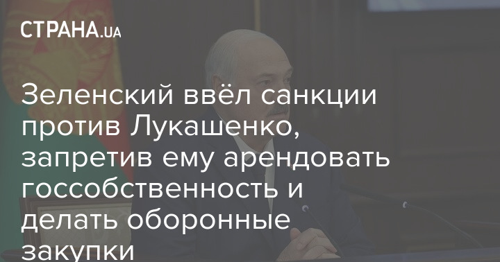 Зеленский ввёл санкции против Лукашенко, запретив ему арендовать госсобственность и делать оборонные закупки