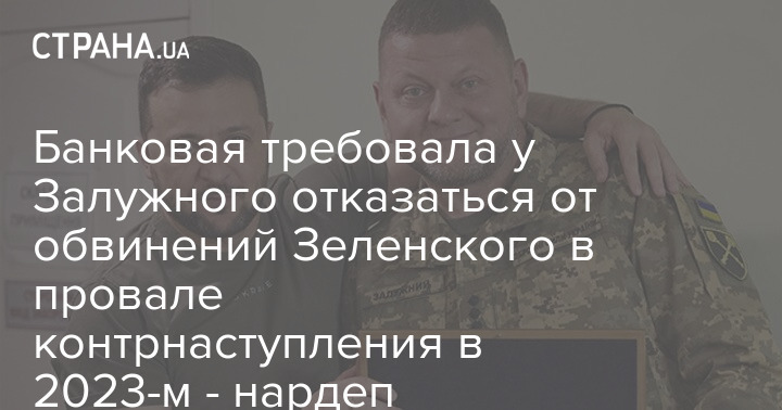 Банковая требовала у Залужного отказаться от обвинений Зеленского в провале контрнаступления в 2023-м - нардеп