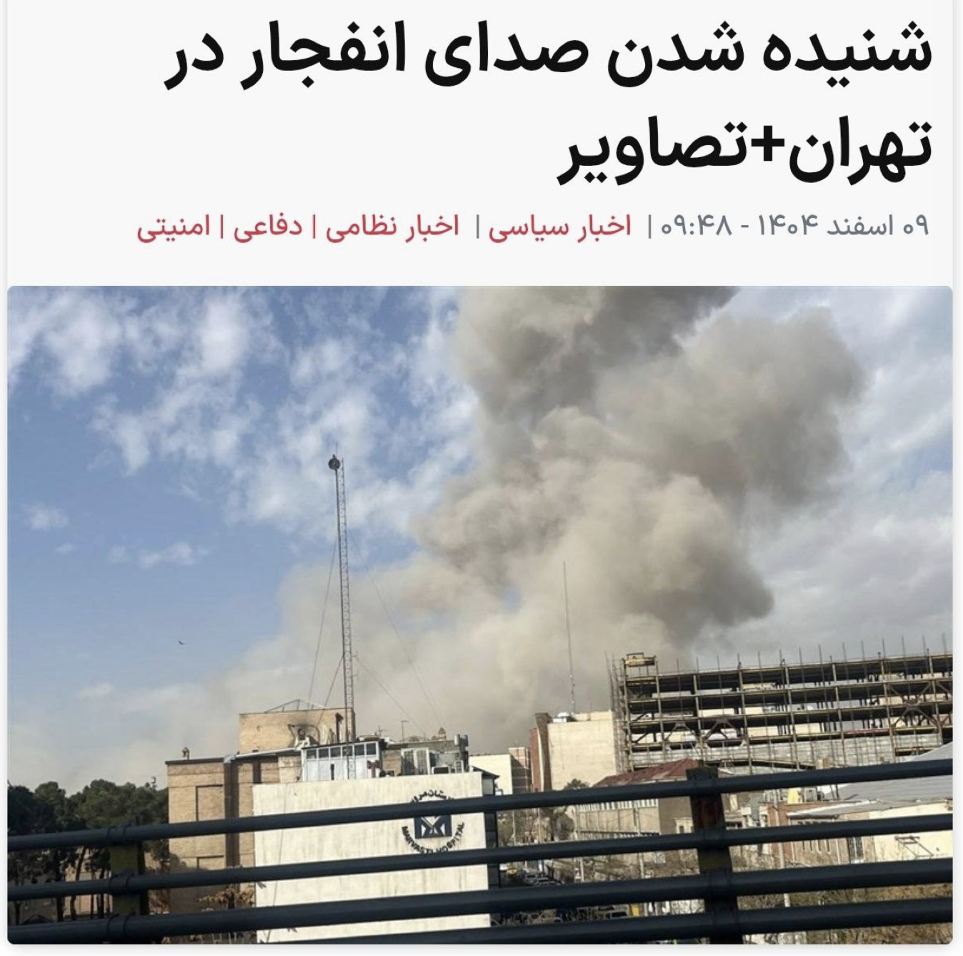 12:03 В Тегеране новый взрыв, сообщают иранские СМИ.