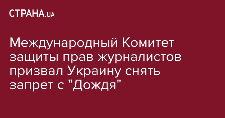 Международная организация Комитет защиты прав журналистов (Committee to Protect Journalists) призвала украинскую власть немедленно отменить запрет вещания российского телеканала "Дождь". Об этом говорится в заявлении на сайте CPJ.