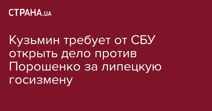 Кузьмин попросил главу СБУ Василия Грицака зарегистрировать уголовное производство "по факту государственной измены, совершенной Петром Порошенко, его ближайшим окружением и топ-менеджерами "Рошен".