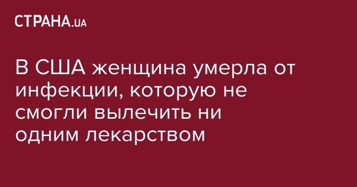 В США женщина умерла от инфекции, которую не смогли вылечить ни одним лекарством