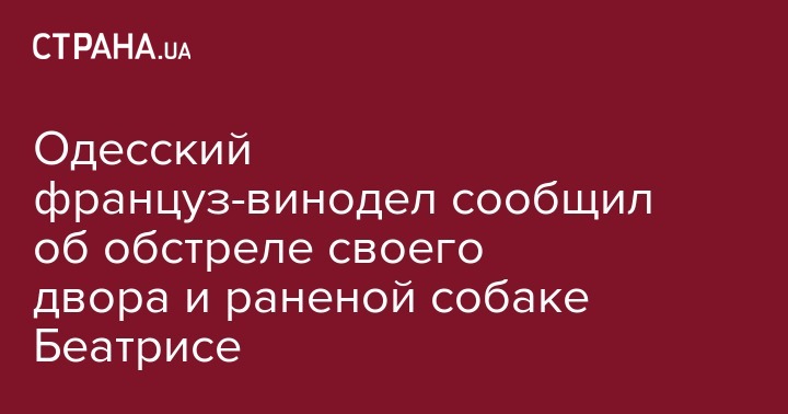 "Сначала воровали столбики, потом выкорчевали 11 Га виноградников, теперь сосед одного из наших "проблемных" пайщиков Мунтяна Дмитрий Бабиенко стреляет из ружья в нашу собаку Беатрису, которая находилась на нашем огороженном сеткой дворе, ранив ее в голову. Как всегда, полиция выехала и зарегистрировала... ", - написал французский винодел-одессит.