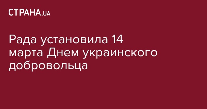 Верховная Рада приняла постановление №4261, которым установила 14 марта Днем украинского добровольца. Об этом говорится на сайте Рады.
