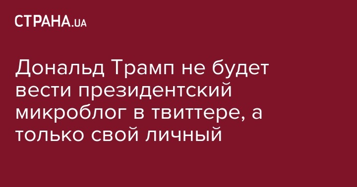 Дональд Трамп не будет вести президентский микроблог в твиттере, а только свой личный