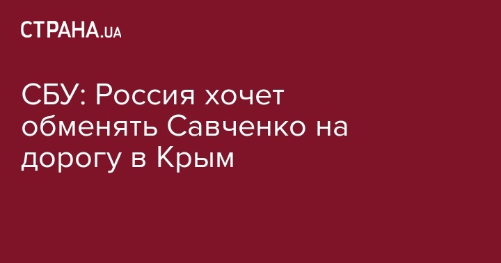 СБУ: Россия хочет обменять Савченко на дорогу в Крым