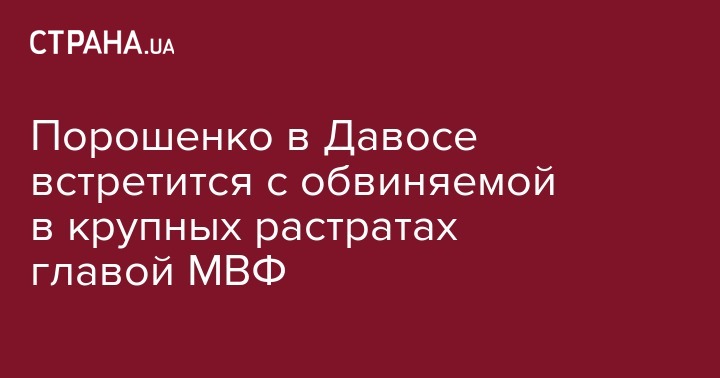 Президент Петр Порошенко сегодня в Давосе проведет встречу с главой Международного валютного фонда (МВФ) Кристин Лагард, которую совсем недавно признали частично виновной в крупных растратах. Об этом сообщила пресс-служба президента.