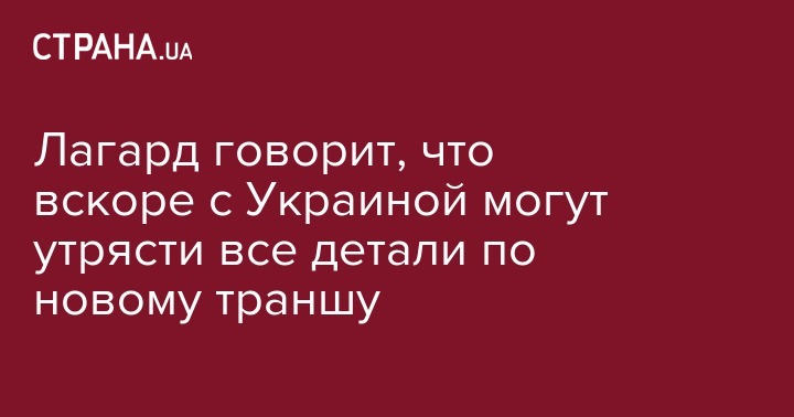 Лагард говорит, что вскоре с Украиной могут утрясти все детали по новому траншу