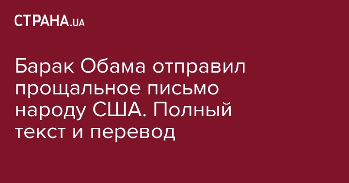 Барак Обама отправил прощальное письмо народу США. Полный текст и перевод