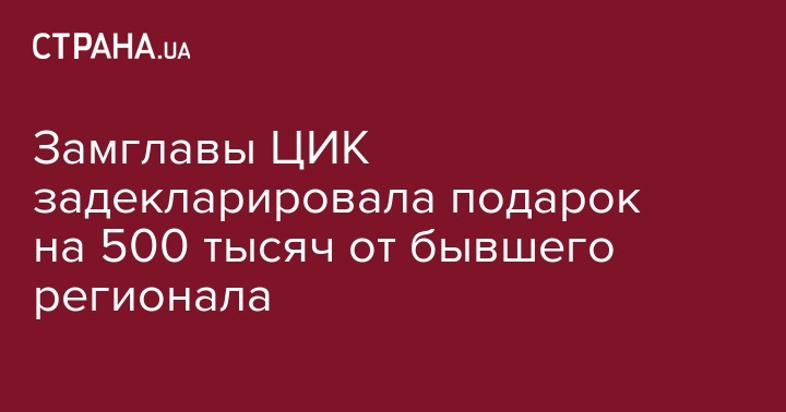 Замглавы Центризбиркома Жанна Усенко-Черная обнародовала информацию о подарке на 500 тысяч гривен. Об этом свидетельствует информация, поданная Усенко-Черной к Национального агентства по вопросам предотвращения коррупции 20 января.