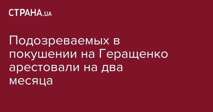 Шевченковский районный суд Киева арестовал двоих подозреваемых в деле о покушении на нардепа Антона Геращенко на два месяца, без права внесения залога. Об этом сообщил сам Геращенко на своей странице в Facebook.