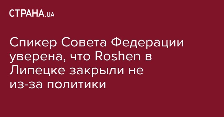 Спикер Совета Федерации уверена, что Roshen в Липецке закрыли не из-за политики