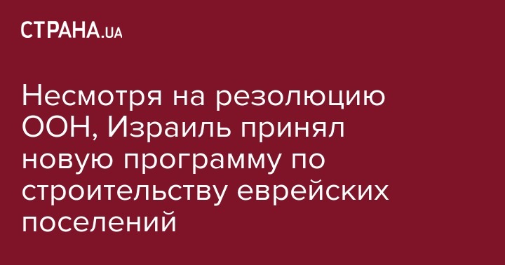 Несмотря на резолюцию ООН, Израиль принял новую программу по строительству еврейских поселений
