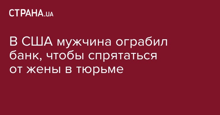 В США мужчина ограбил банк, чтобы спрятаться от жены в тюрьме