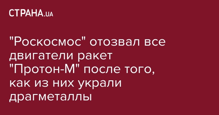 "Роскосмос" отозвал все двигатели ракет "Протон-М" после того, как из них украли драгметаллы