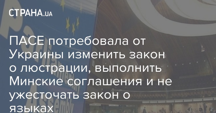 ПАСЕ потребовала от Украины изменить закон о люстрации, выполнить Минские соглашения и не ужесточать закон о языках