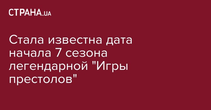 Стала известна дата начала 7 сезона легендарной "Игры престолов"