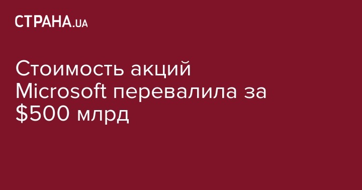 Капитализация Microsoft Corp выросла на 2,5% во время торгов в пятницу впервые с марта 2000 года превысила отметку в $500 млрд, сообщает "Интерфакс-Украина".