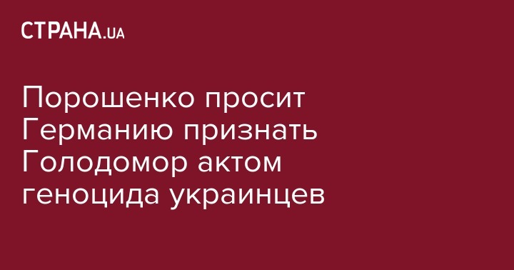 Президент Петр Порошенко обратился к парламенту Германии с просьбой признать Голодомор актом геноцида против украинского народа. Об этом сам президент написал в Twitter сообщении.