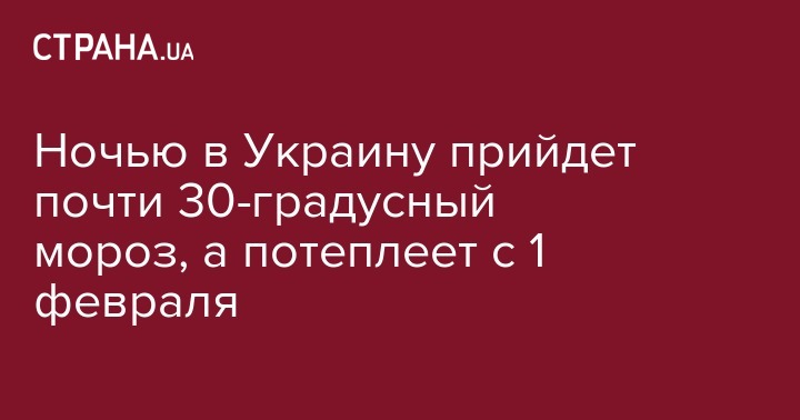 На востоке 31 января днем термометры покажут -11...-16, ночью -19...-26. В Днепре и Запорожье немного теплее: -7...-11 днем и -19...-21.