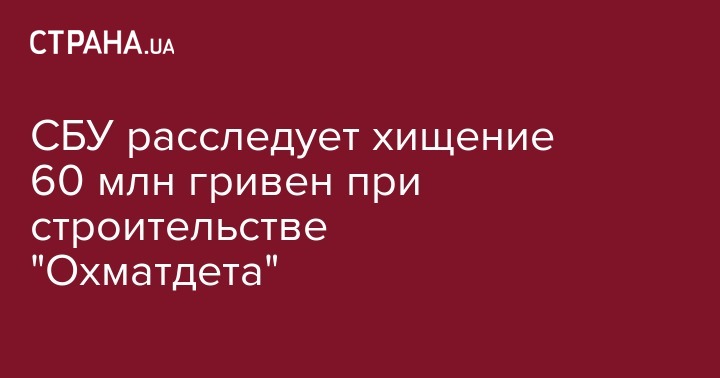 СБУ расследует хищение 60 млн гривен при строительстве "Охматдета"