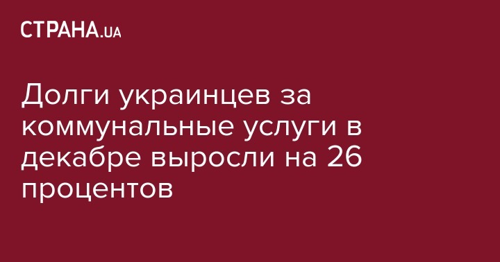 Задолженность населения Украины по оплате жилищно-коммунальных услуг в декабре 2016 года увеличилась на 26% по сравнению с ноябрем и составила 20,175 млрд грн. Об этом свидетельствуют данные Государственной службы статистики.