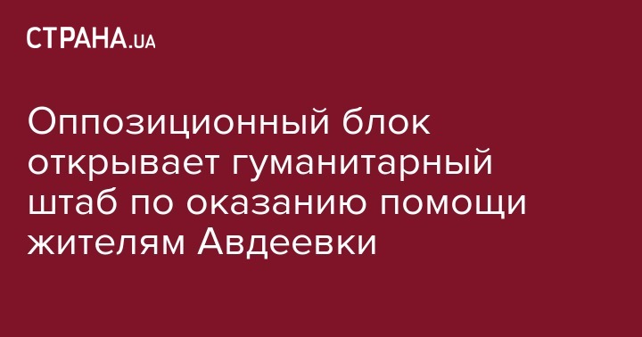 "Третьи сутки под Авдеевкой идут тяжелые бои. Гибнут мирные граждане. Тысячи жителей Авдеевки остались без тепла, электричества, воды и продуктов питания. Оппозиционный блок открывает работу гуманитарного штаба по оказанию помощи городу, оказавшемуся на грани гуманитарной и техногенной катастрофы, - говорится в заявлении партии. - Уже созданы штабы по оказанию помощи жителям Авдеевки на предприятиях Запорожья, Кривого Рога и Мариуполя, входящих в Группу Метинвест. Мы поддерживаем и присоединяемся к этой инициативе. Штаб гуманитарный помощи Оппозиционного блока продолжит свою работу столько сколько будет необходимо для восстановления нормального жизнеобеспечения города и окрестностей".