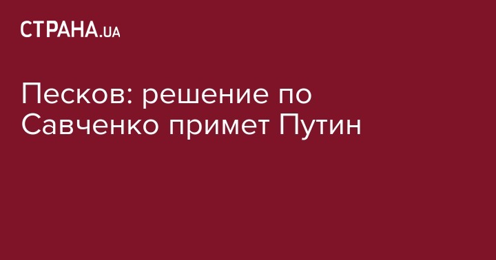 Как заявил Дмитрий Песков, пресс-секретарь Путина, Российская сторона в вопросе о возможном обмене украинской летчицы Надежды Савченко будет действовать в строгом соответствии с национальным законодательством Российской Федерации.