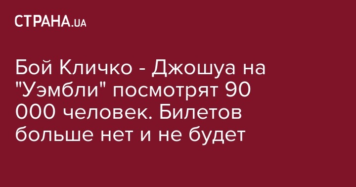 Таким образом, на поединок Кличко - Джошуа легендарная арена "Уэмбли" примет 90 тысяч зрителей, что является рекордом для этого стадиона на боксерских поединках.