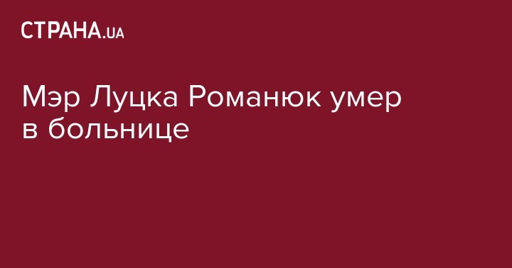 Мэр Луцка Романюк умер в больнице