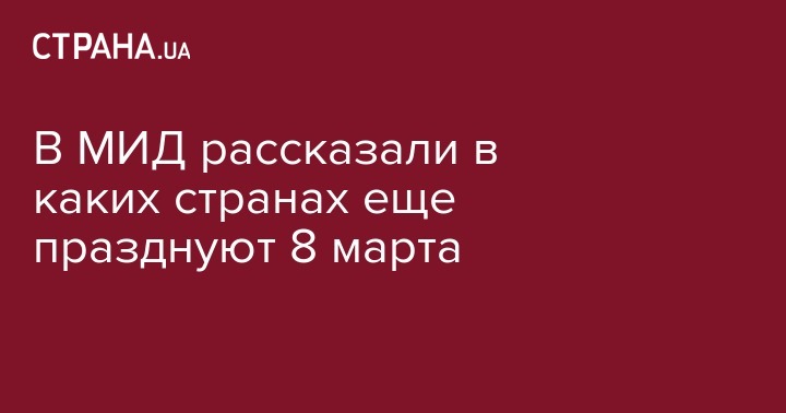 В Министерстве иностранных дел рассказали, что Международный женский день 8 марта установлен на государственном уровне в 14 странах мира. Об этом МИД сообщил в ответе Украинским новостям.