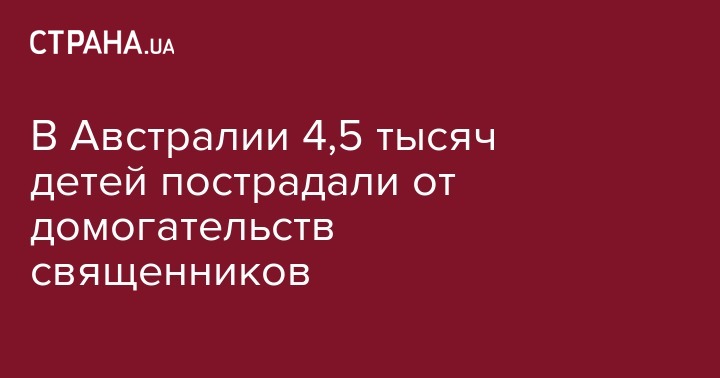 По данным доклада Королевской комиссии Австралии (Australia's Royal Commission) 4,5 тысяч детей в возрасте от 9 до 12 лет стали жертвами домогательств священников католической церкви за последние 35 лет. Об этом сообщает The Guardian.