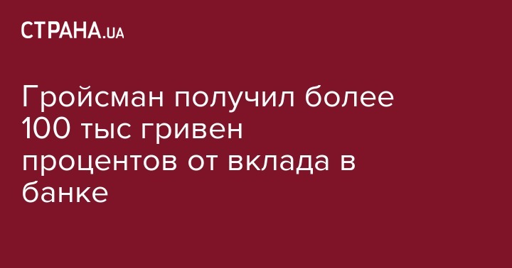 Гройсман получил более 100 тыс гривен процентов от вклада в банке