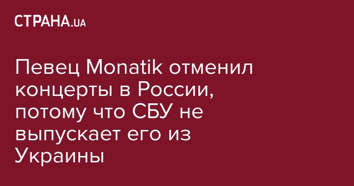 Певец Monatik отменил концерты в России из-за запрета СБУ на выезд из Украины. Об этом пишет Лайф со ссылкой на пресс-службу артиста.
